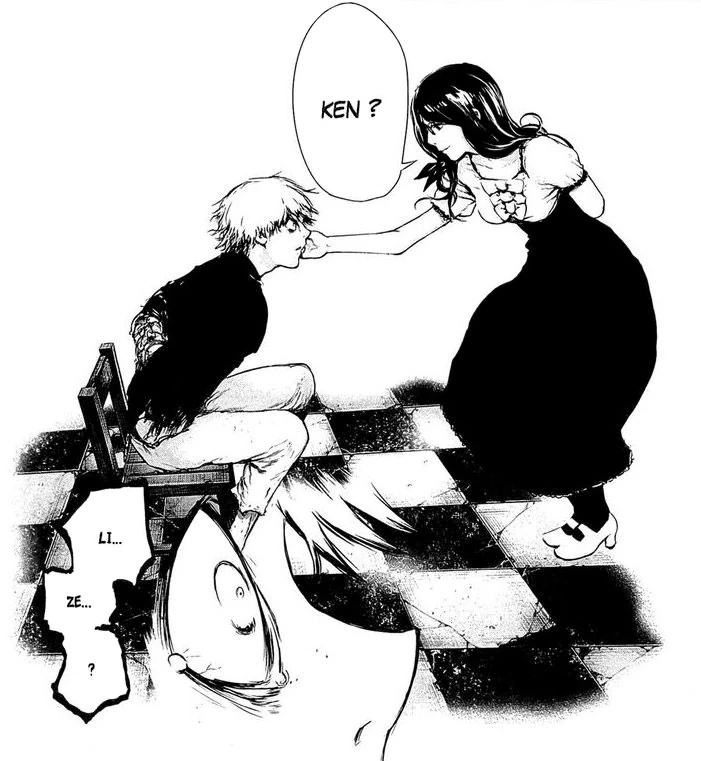 Mais de nouveau, Lize s'arrête et se colle contre Ken, qui ne comprend pas son attitude et se sent embarrassé. Elle lui révèle que, depuis le début, elle avait remarqué qu'il la regardait et qu'elle aussi le regardait depuis tout ce temps. Ken, heureux, sourit. Juste après ça, Lize plante ses dents dans l'épaule de Ken. Déboussolé, il tombe à terre et voit avec horreur quatre tentacules émerger du dos de la jeune femme. Il comprend vite qu'en réalité Lize est une goule.